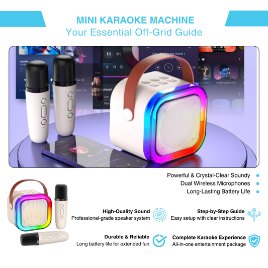 OST™ 2025 Mini Bluetooth Karaoke Machine for Kids & Adults – Dual Mics, LED Lights, Portable